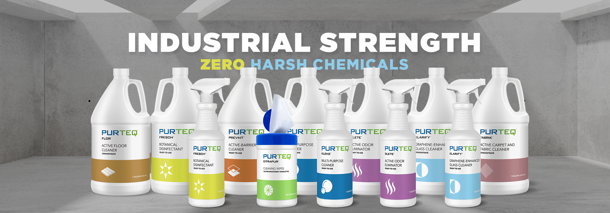 PUR90 uses innovative earth-friendly formulations by our partners at PURTEQ. Our responsible product line harnesses ‘Nature’s Technology’ to solve all your cleaning challenges. You can now replace traditional QUAT based cleaners and harsh chemicals with outstanding results. For ‘greener’, ‘cleaner’ alternatives that deliver the results you demand, check out our extensive line of mineral and plant-based products.